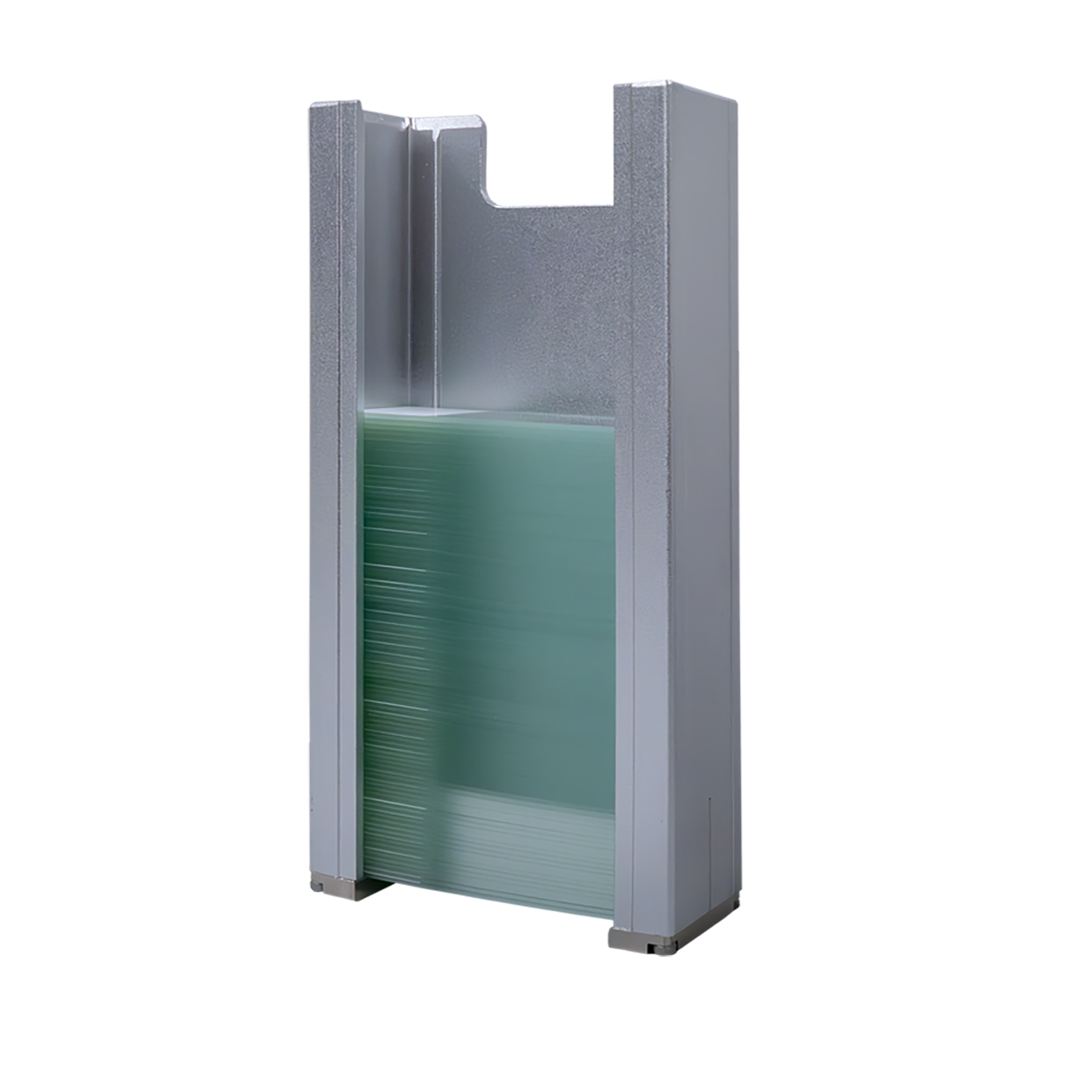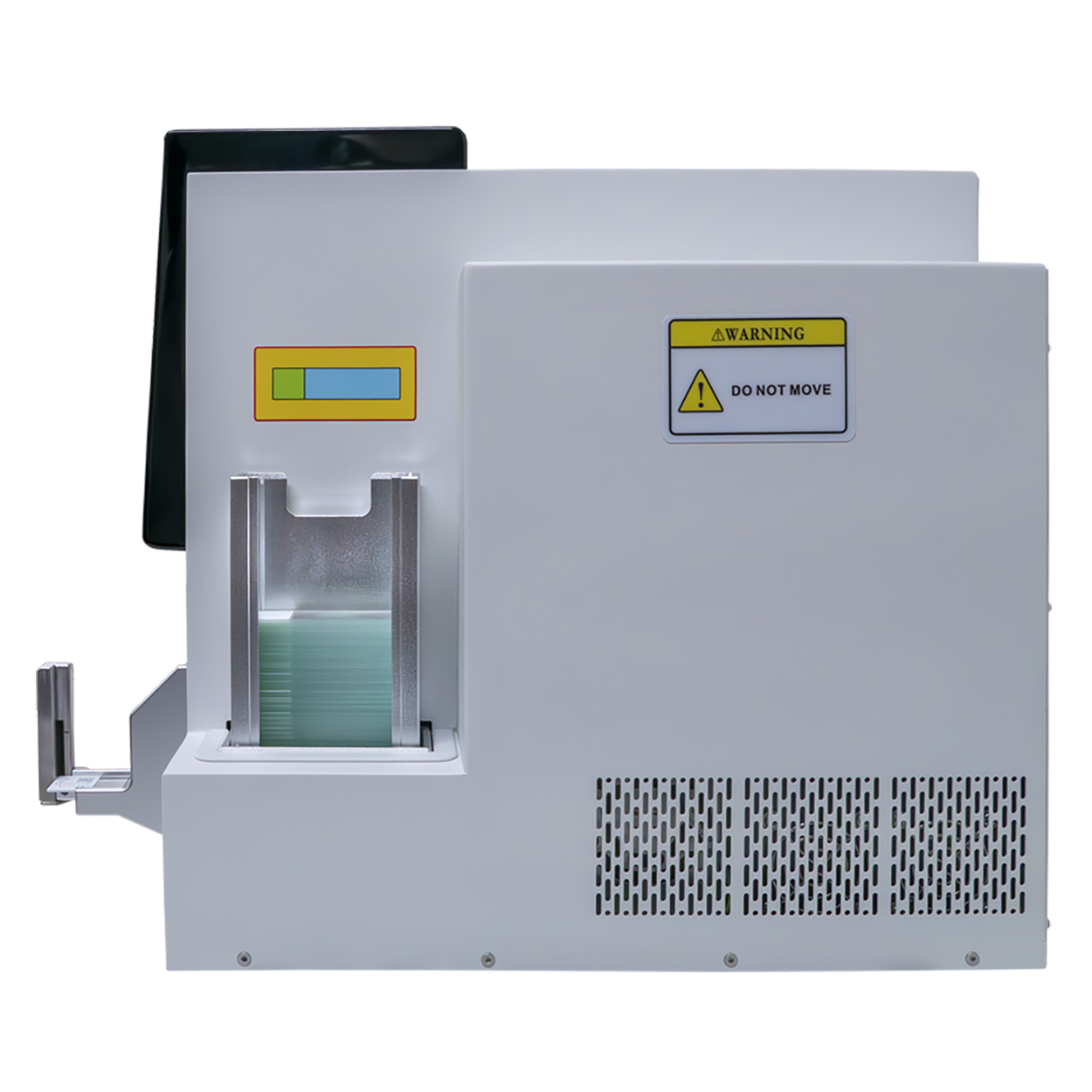 Het magazijn is eenvoudig te laden en kan een capaciteit van maximaal 150 microscoopglaasjes bevatten. Een tweede magazijn is inbegrepen om het printproces continu te onderhouden. De dia-uitvoer aan de voorkant van de MSP 150 Slide Printer is geschikt voor maximaal 50 dia’s. Gesorteerd op het concept van first in – first out, blijft de eerste geprinte dia bovenaan terwijl de volgende dia’s eronder uitkomen in chronologische volgorde van printen. Alle standaardformaat dia’s met gekleurde matte uiteinden kunnen worden gebruikt.