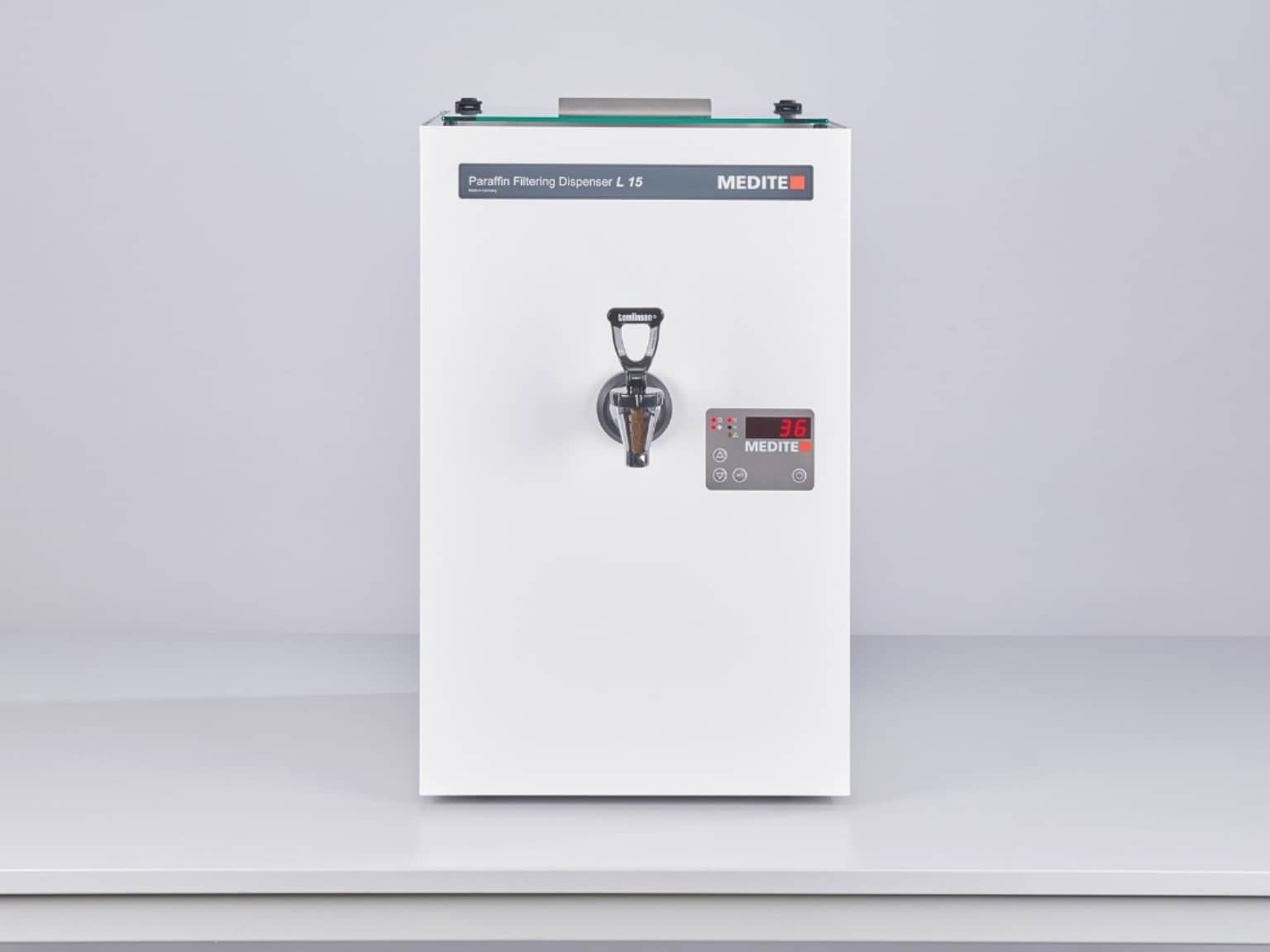 Door de doordachte constructie wordt nadruppelen van paraffine uit de dispenser voorkomen en blijft de werkruimte schoon. De temperatuur kan traploos worden aangepast tot een maximale waarde van 90 °C door een membraantoetsenbord met digitaal display. Een glazen deksel met praktische handgreep dekt de paraffinetank af en maakt een goed zicht op het actuele vulniveau mogelijk. Zowel het deksel als de gepoedercoate metalen behuizing van de L15 zijn robuust en bestand tegen gangbare laboratoriumreinigingsmiddelen.