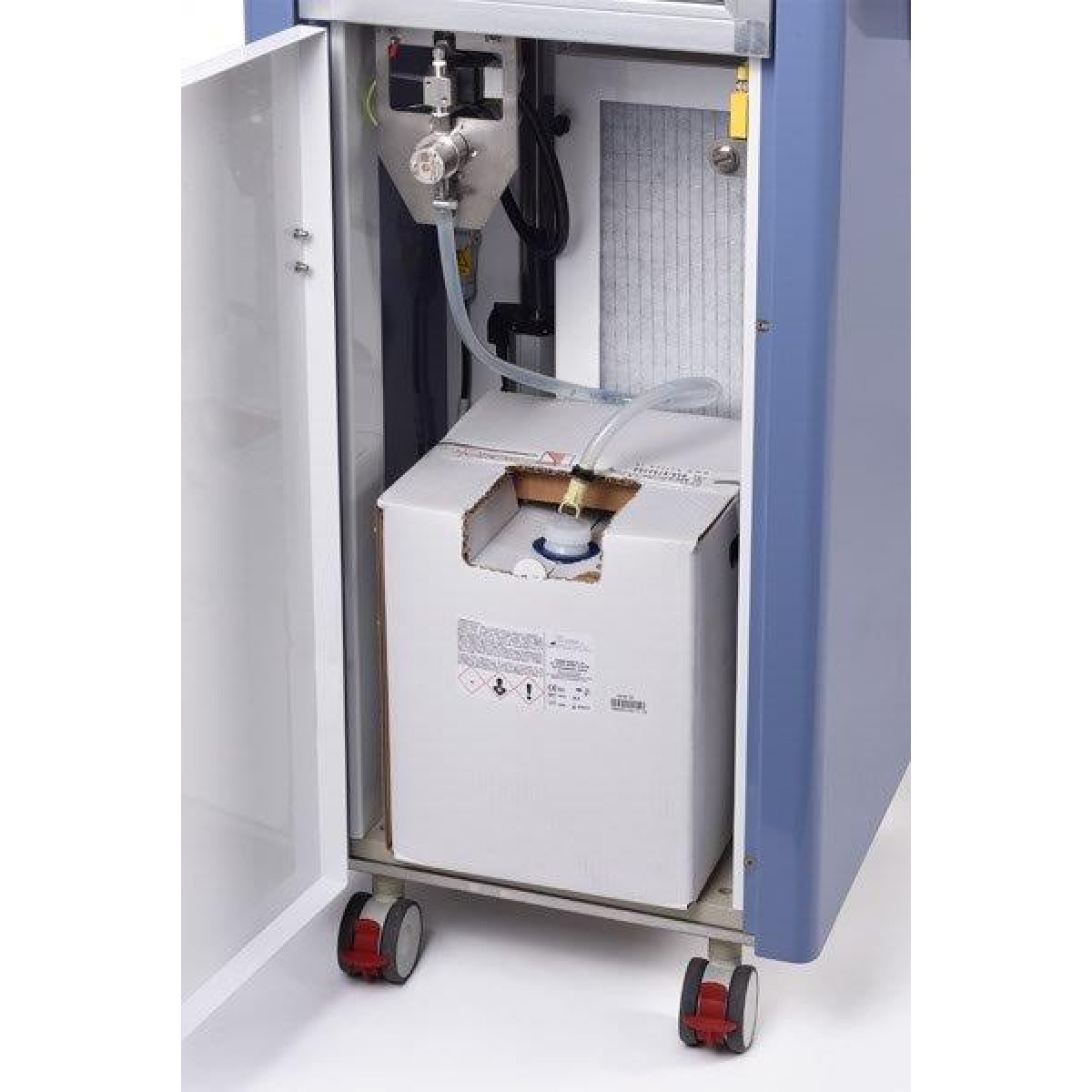 Dankzij deze nieuwe apparatuur is het mogelijk om formaline in zes verschillende ‘specimen’ containers te gieten zonder dat de gebruiker bloot wordt gesteld aan de formaline en de schadelijke dampen. Het systeem is bijzonder gemakkelijk in gebruik. Degene die het apparaat bedient, zet de ‘specimen’ container met sparing in het deksel in het systeem en vervolgens doet hij/zij het deurtje dicht zodat de interne afzuiging in werking treedt. Het apparaat hoeft niet aangesloten te worden op een extern ventilatiesysteem.