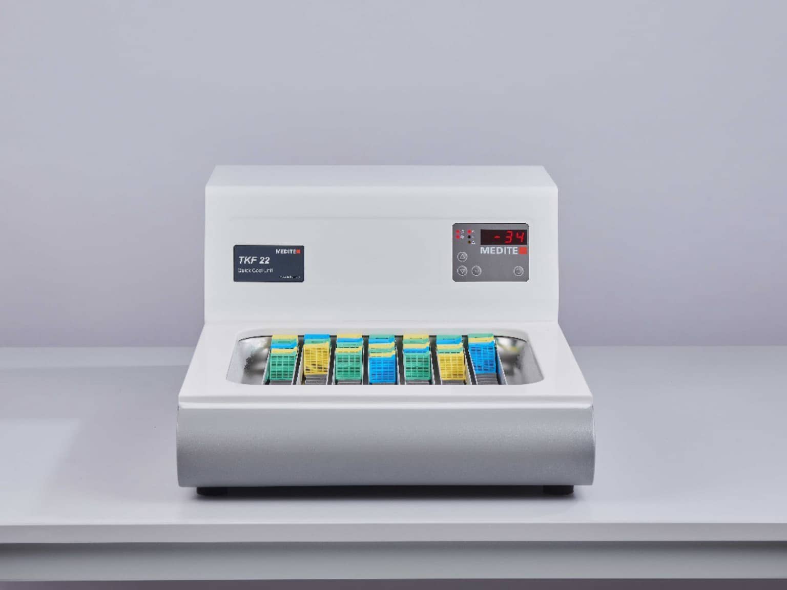 De TKF 22 wordt in het histologisch laboratorium gebruikt voor het snel invriezen van paraffineblokken. Er passen maar liefst 180 paraffineblokken in de naadloze, diepgetrokken koelbak van roestvaststaal. De krachtige koelunit zorgt voor een maximale koeltemperatuur van -35 °C (afhankelijk van de omgevingstemperatuur) die wordt bereikt in ca. 10 minuten.